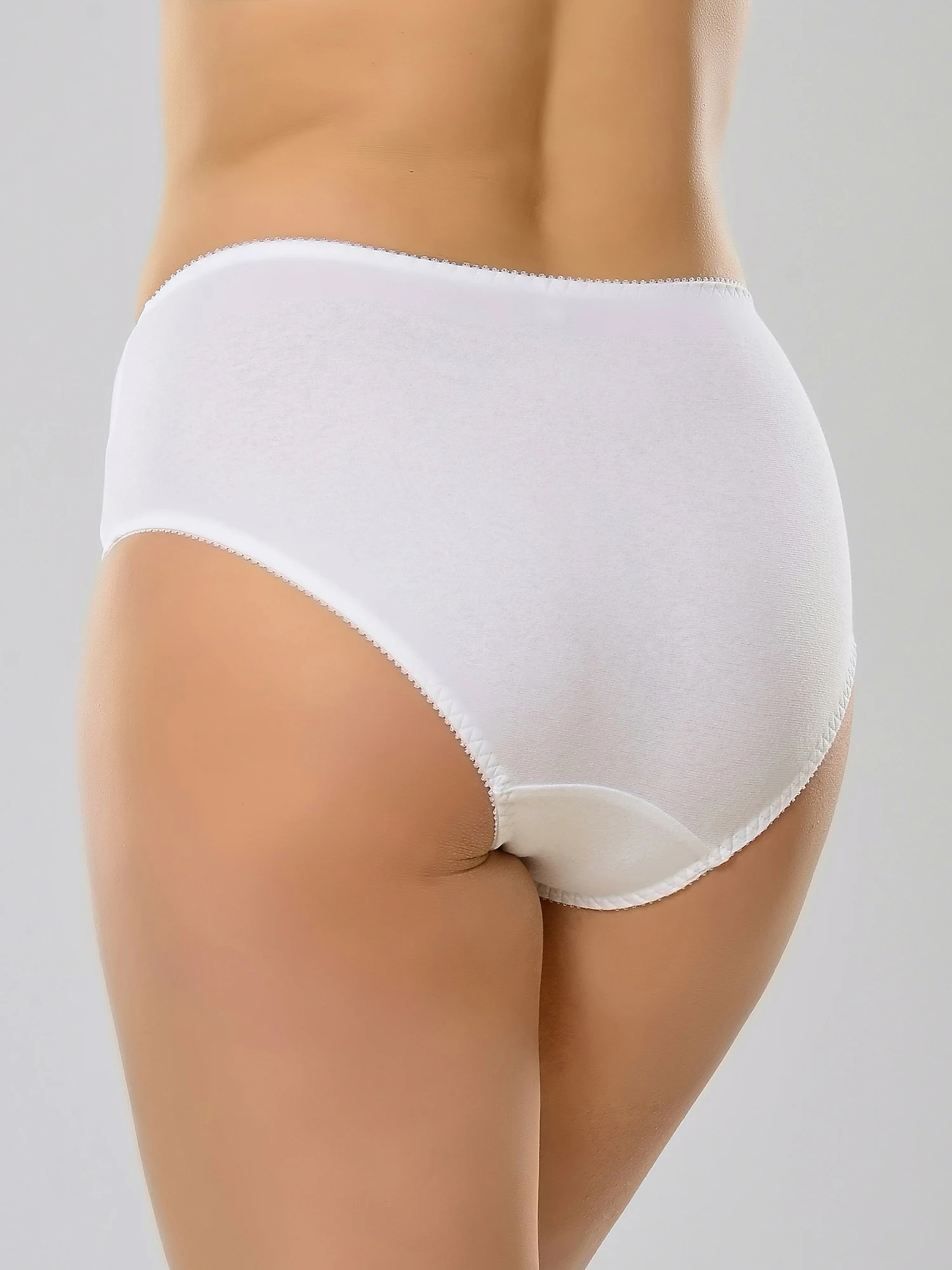 Высокие трусы из натурального хлопка с эластаном, с отделкой кружевом. Спереди два вертикальных рельефа визуально сужают талию и делают фигуру более стройной. Идеально подходят для полных дам. Комфортные и незаментые в носке. Ластовица из хлопка.
