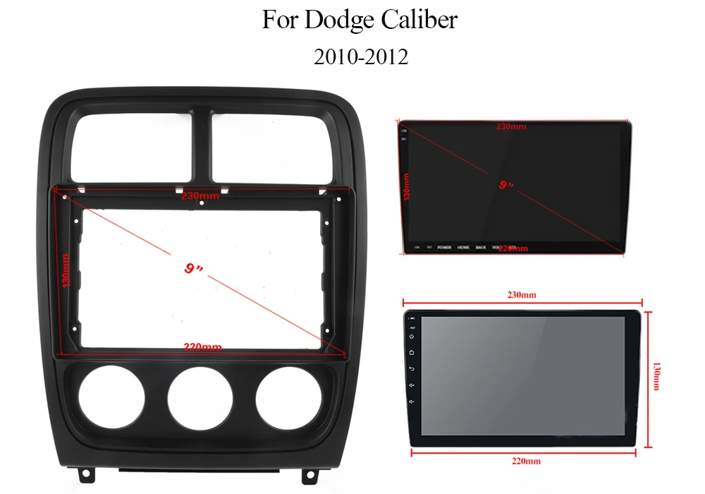 2. Подходит для Dodge Caliber 2010-2012Приборная панель модели автомобиля3. Замена для оригинальной приборной панели автомобиля и может подойти 9 дюймов (Д * В * Л = 230*130*220 мм) экран или Задняя нижняя часть Android автомобильный dvd навигационный плеер