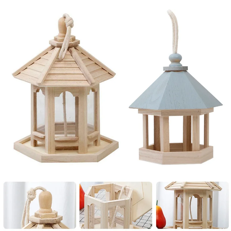 Клетка для птиц имеет шестиугольную форму, она полностью собрана и может быть подвешена, а Наклонная Крыша блокирует солнечный свет и дождь