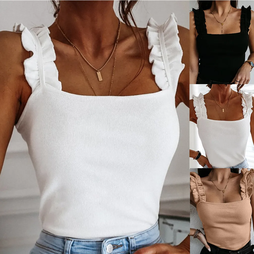 Женский Свободный пуловер без рукавов с квадратным вырезом, укороченный топ, рубашка