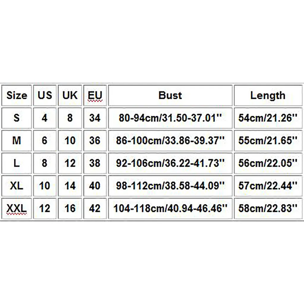 Размер США Великобритания ЕС Бюст Длина S 4 8 34 80-94 см/31,50-37,01'' 54 см/21,26'' М 6 10 36 86-100 см/33,86-39,37'' 55 см/21,65'' L 8 12 38 92-106 см/36,22-41,73'' 56 см/22,05'' XL 10 14 40 98-112 см/38,58-44,09'' 57 см/22,44'' XXL 12 16 42 104-118 см/40,94-46,46'' 58 см/22,83''