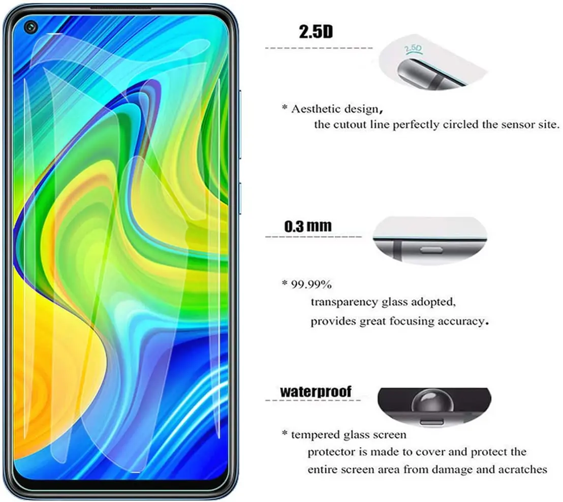 1. Чехол для телефонаДизайн меньше, чем экран телефона по краям, закрывает только плоскую область дисплея, чтобы соответствовать всем чехлам. 2. Высокая прозрачность99,9% прозрачность, чтобы сохранить естественную красоту вашего телефона.Примечание: сотовый телефон в комплект не входит