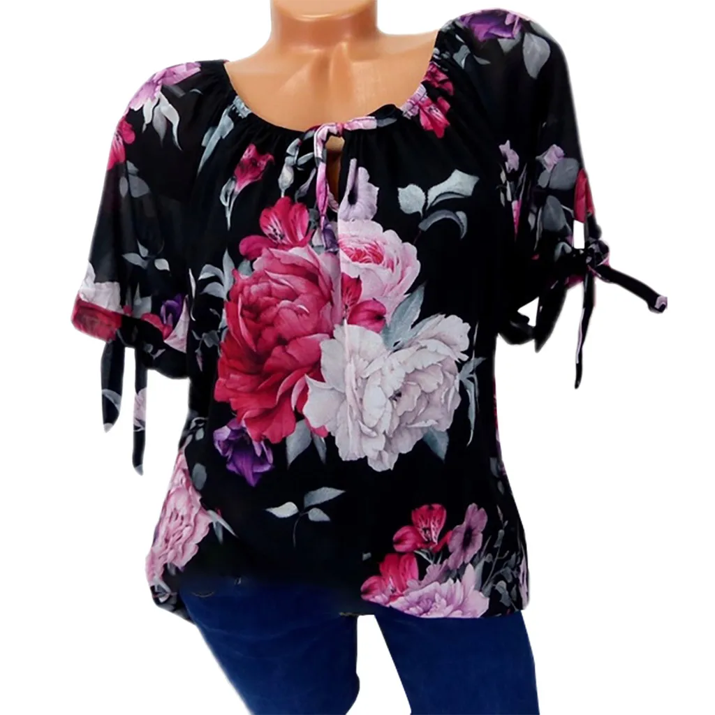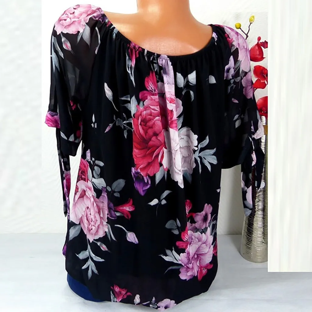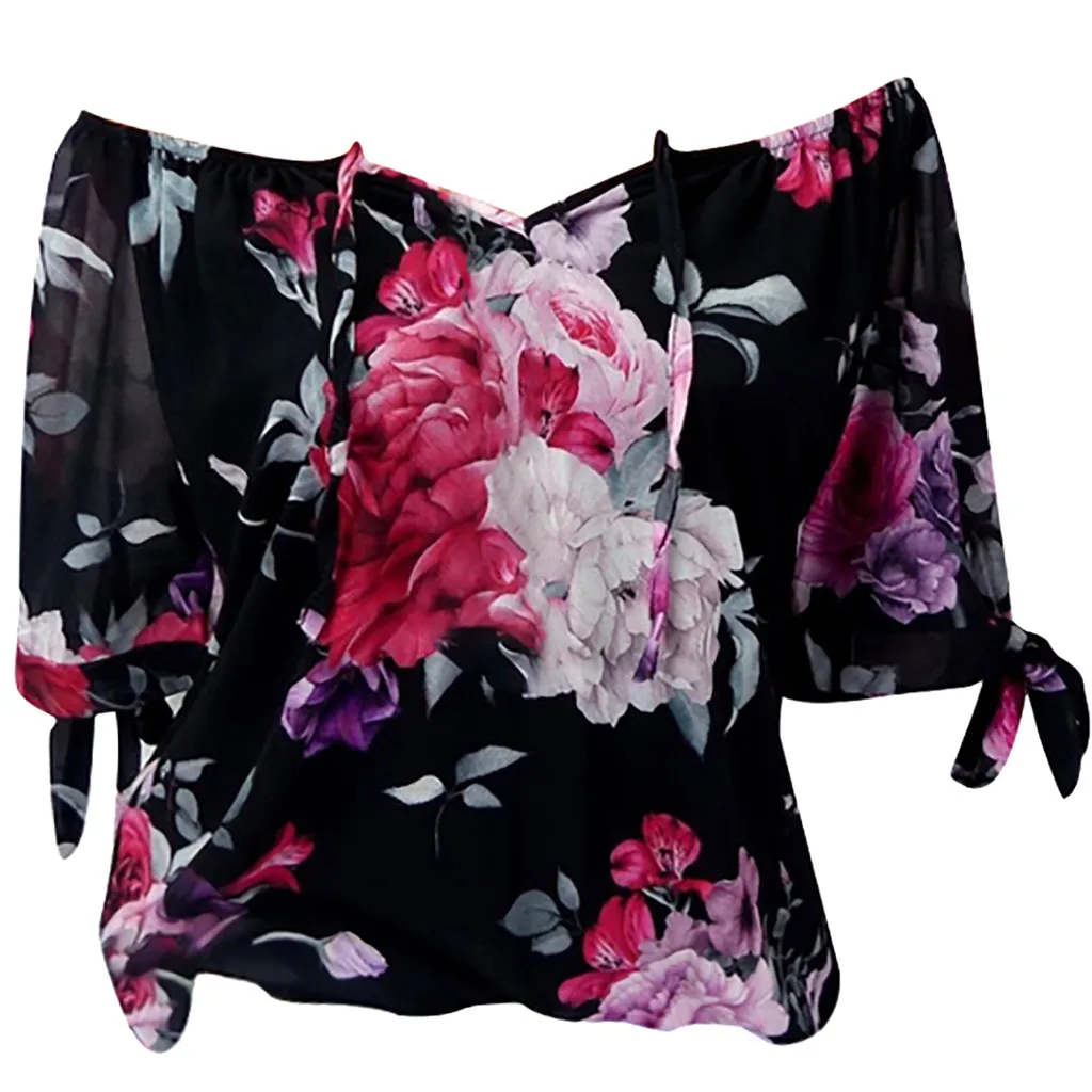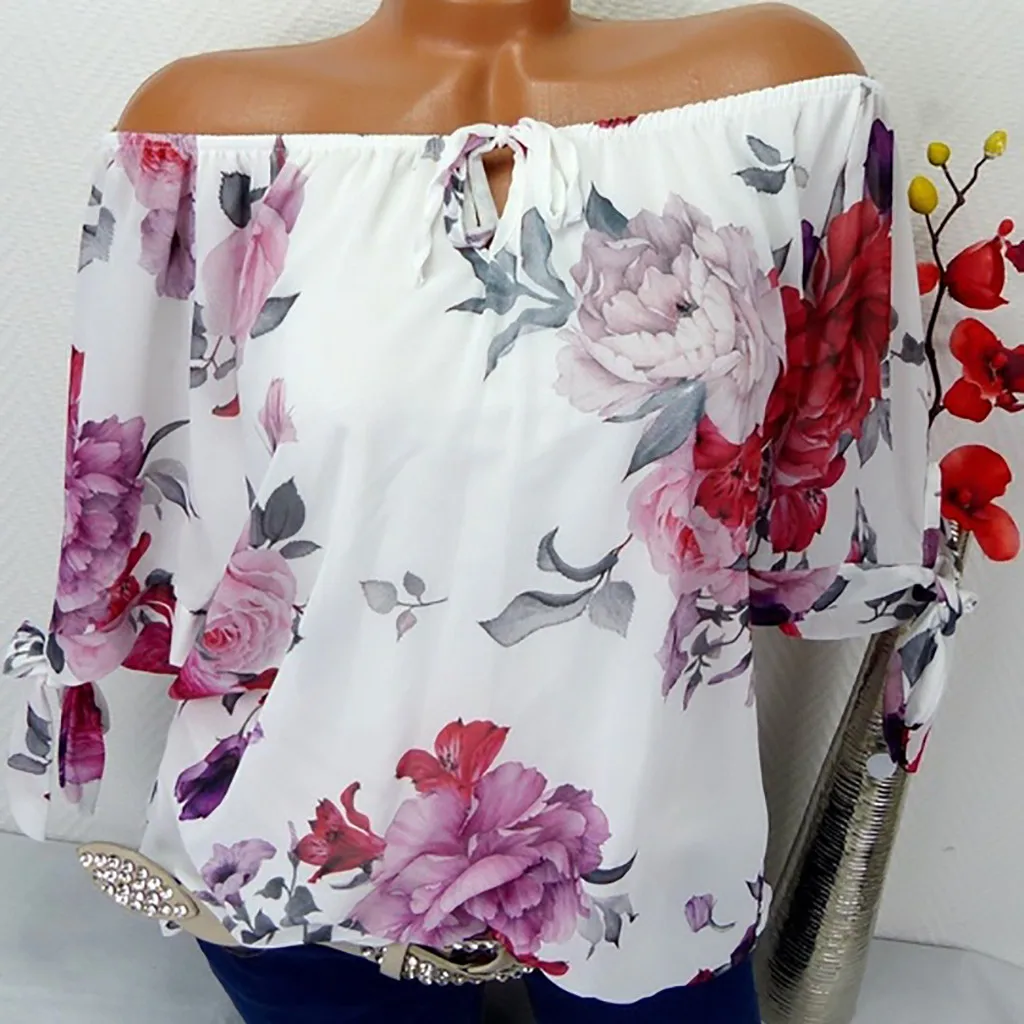 Женская блузка с коротким рукавом и принтом с открытыми плечами, пуловеры, топы, рубашки, большие размеры