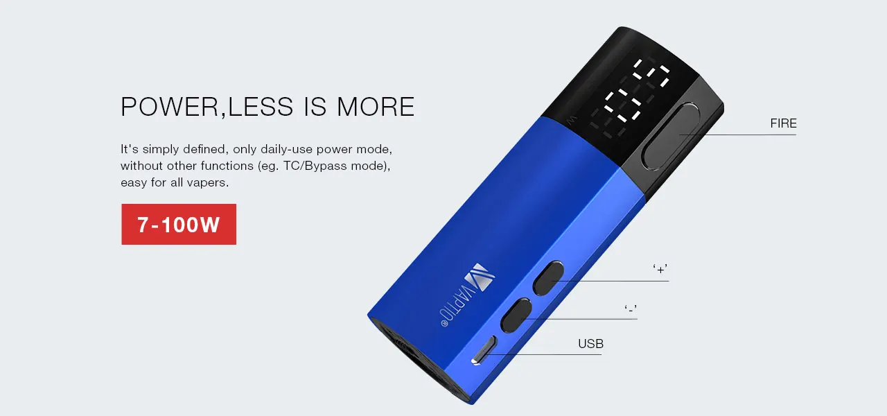 (1) одна батарея, Адаптивная к различным типам батарей (21700/20700/18650), не входит в посылка (2) 0,002 s время стрельбы (3) Герметичный электрод фиксированный воротник (4) только режим ежедневного использования, без других функций (например. Режим TC/Bypass) (5) Инновационный дисплей освещения (6) простая в замене Универсальная база (7) адаптивность к общим баки RDA