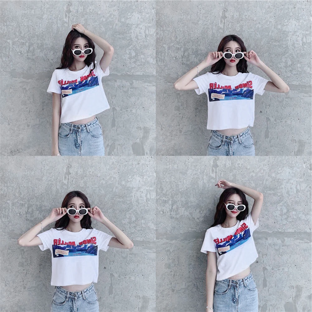 Повседневная Женская Мягкая футболка с коротким рукавом и круглым вырезом