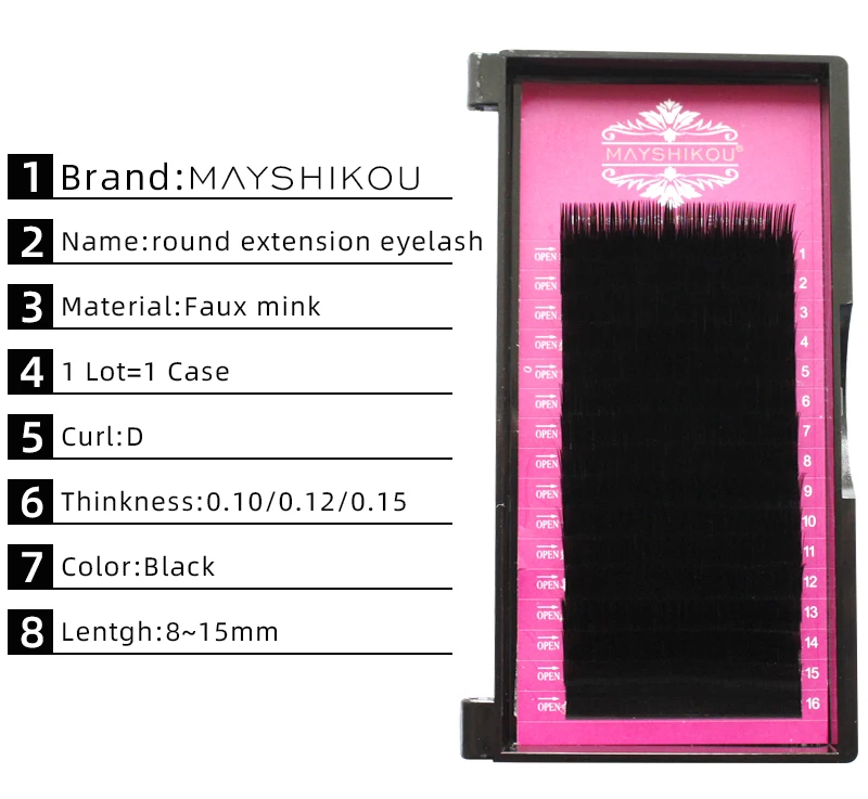Бренд: mayshikou Артикул: отдельные ресницы Материал: синтетические волосы Цвет: черный Ремесло: ручная работа Применение: наращивание ресниц Толщина: 0,10 мм/0,12 мм/0,15 мм Curl:D Длина: 8 мм/9 мм/10 мм/11 мм/12 мм/13 мм/14 мм/15 мм Количество: 16 рядов/лотков