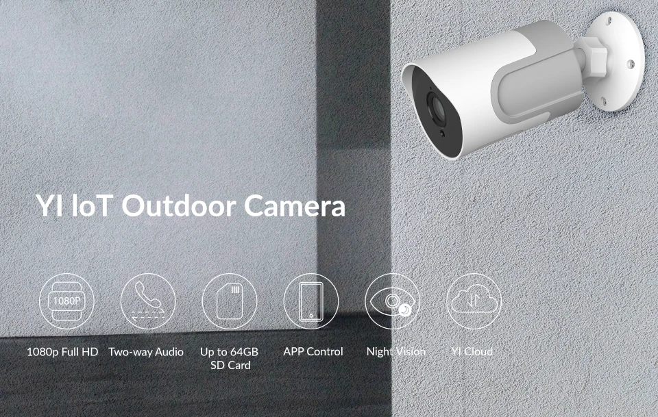 IP 65 всепогодный рейтинг Уличная камера YI loT Выдерживает ветер и дождь, обеспечивая безопасность и надежность. Водонепроницаемый, пылезащитный и прочный против постоянно меняющейся внешней среды. Это здесь, чтобы оставаться