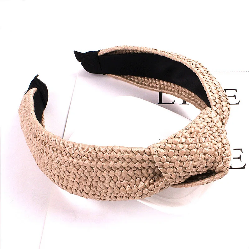 Женская Плетеная соломенная повязка ручной работы с перекрестными узелками, широкий обруч для волос в богемном стиле