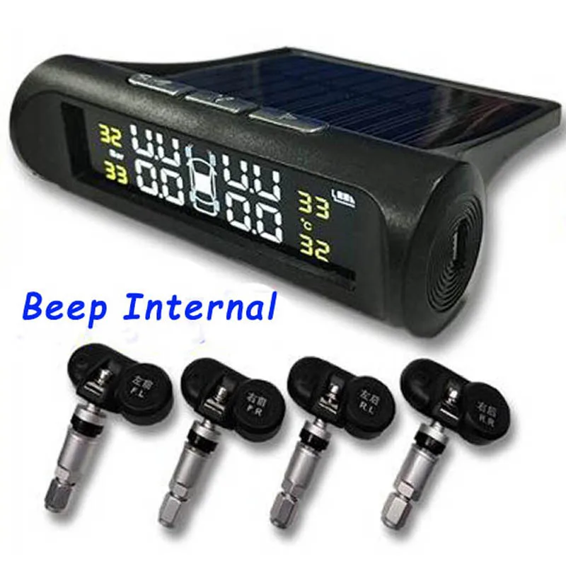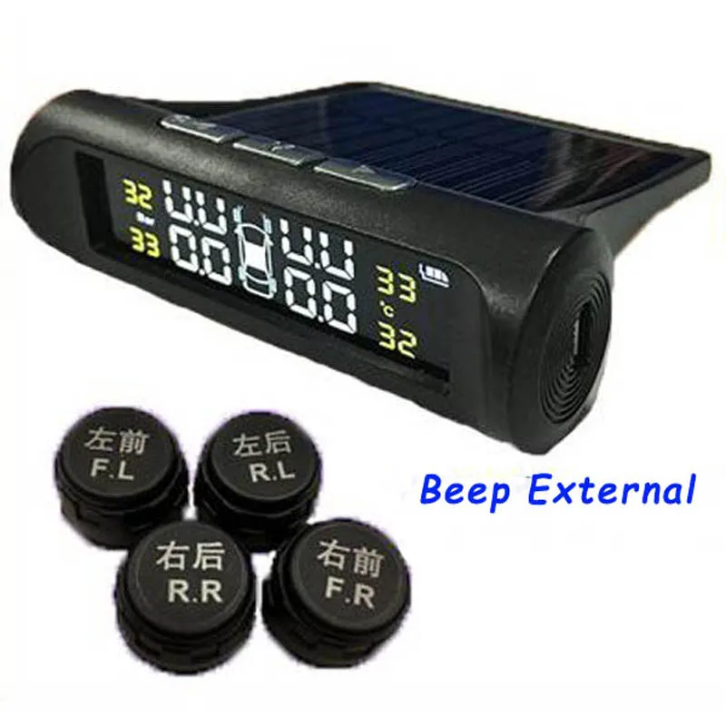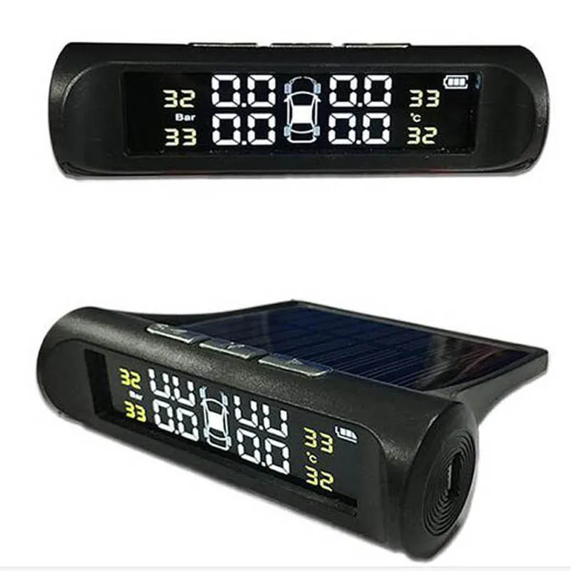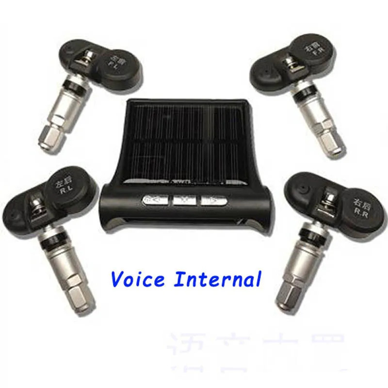 Голосовой сигнал Солнечный Мощность USB система контроля давления в шинах автомобиля шины Давление мониторинга Системы ЖК-дисплей 4 внешних и внутренних датчики для внедорожник Температура Предупреждение