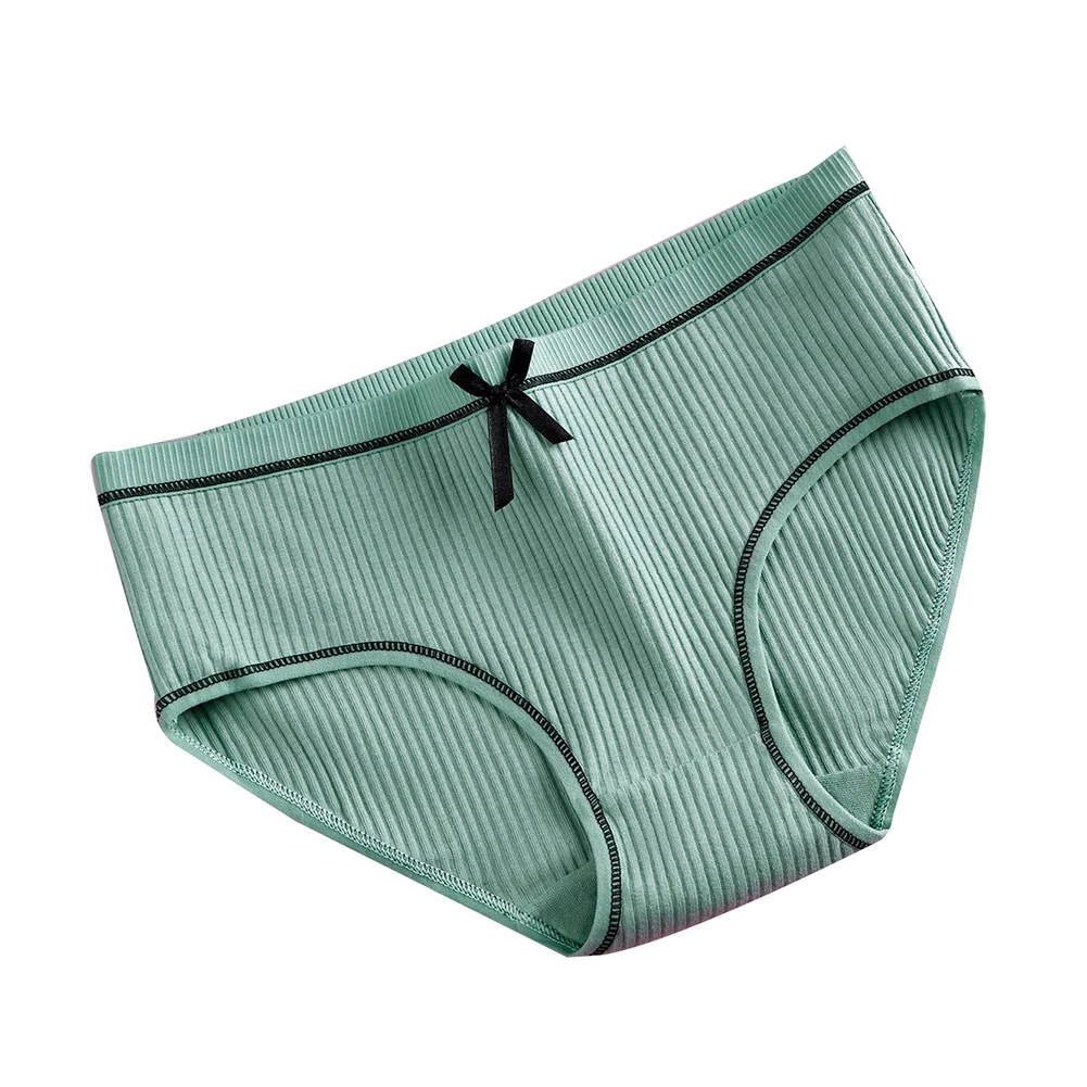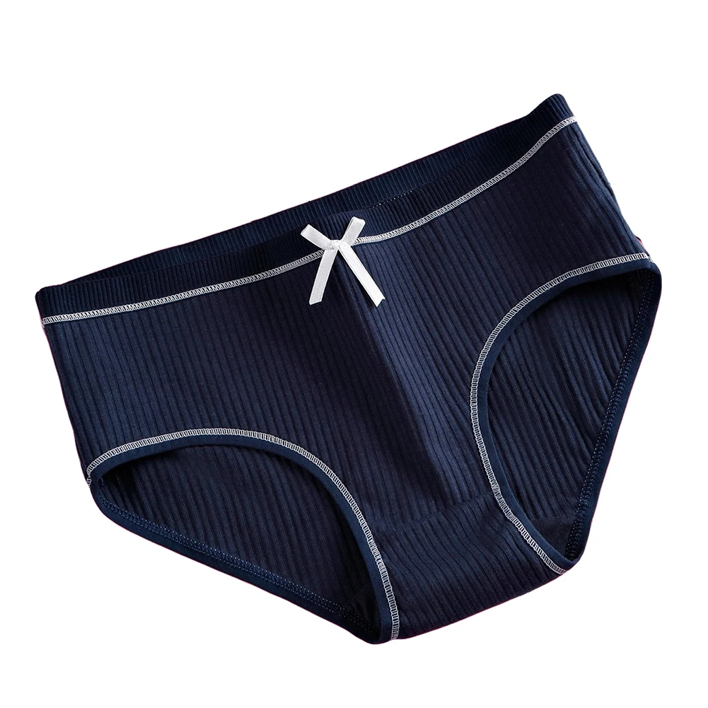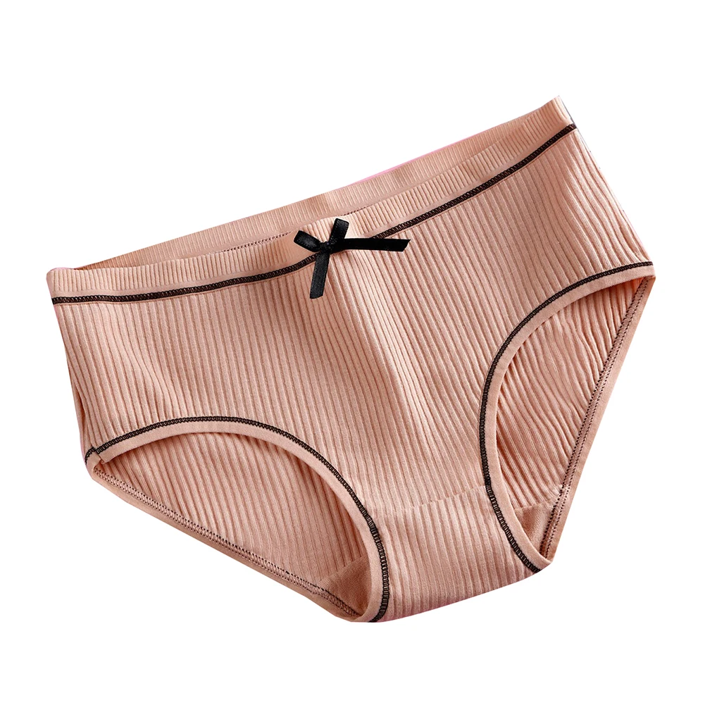 Милые однотонные трусики в рубчик с бантом и низкой талией для девочек, хлопковые трусы, нижнее белье