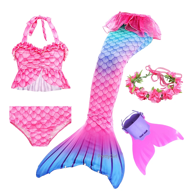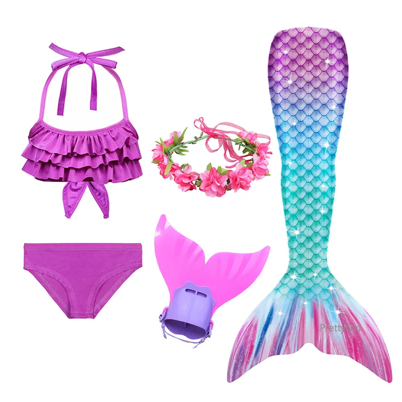 5 шт.: 1 платье с хвостом русалки + 1 бюстгальтер + 1 шорты + 1 гирлянда + 1 ластовица Monofin