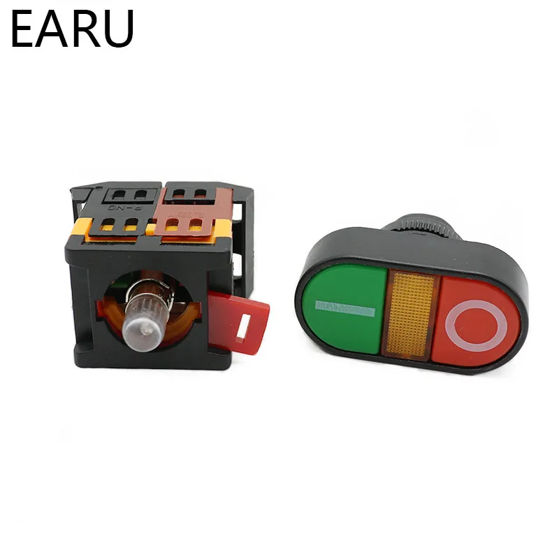 · 6 винтовых клемм. · Двойной кнопочный переключатель со встроенным индикатором 220 В переменного тока широко используется в промышленности и высокой эффективности. · Двойной кнопочный переключатель может использоваться ниже для управления электромагнитным стартером, контактором, реле и другими электрическими схемами. · Кнопки с индикаторным светильник можно использовать в полях, где указан сигнальный светильник.