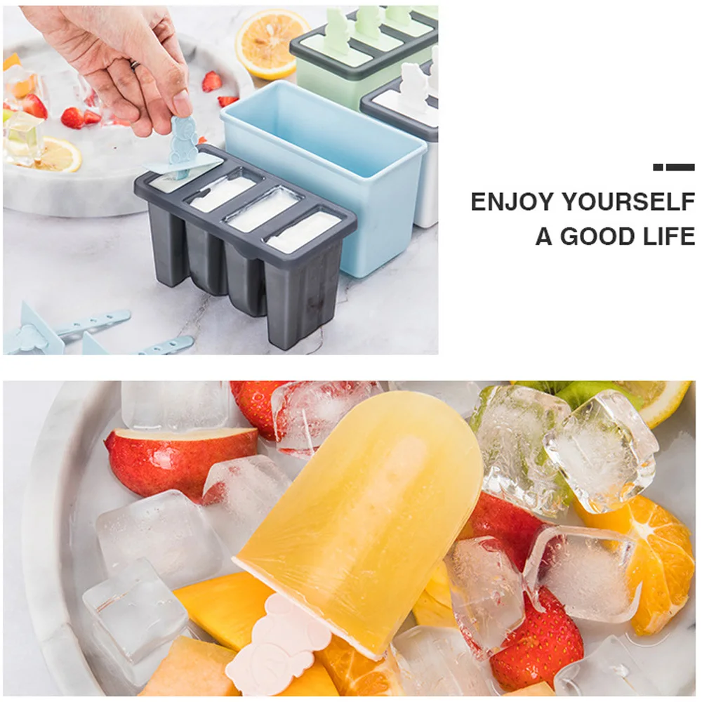 <Простота в использовании: смешать ваши любимые сочетания вкуса, затем вылить жидкость в формы, установить в основании. После заполнения аккуратно вставьте палочки в жидкость и замерзайте до твердости.