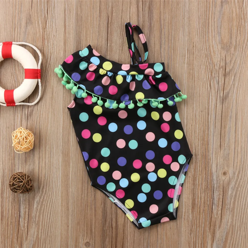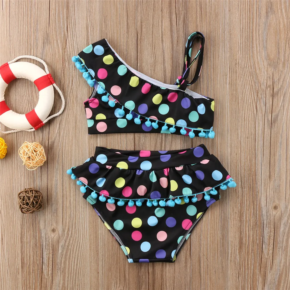Новинка; Летний детский танкини для маленьких девочек; Комплект бикини с лямками на плечах и оборками в горошек