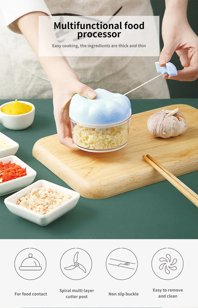 Nombre del producto: Tirar de ajo/cebolla trituradora, picadora de prensa Manual de corte de alimento procesador para frutas hortalizas carne herramienta de cocina Mini picador de comida Материалы: Cubierta ABS + pp + 304 acero inoxidible Таманьо: 7 см (2,75 дюйма) * 9 см (3,54 дюйма) Инструкции по эксплуатации: 1. Coloque las cuchillas en el centro del Tazón cuidadosamente. 2. Corte los inversientes en trozos pequeños y póngalos en El bol, no lo ponga Mama o menos, la mitad es apreciada. 3. Cubrela antes de picar. 4. Sujeta la tapa con una mano y tira de la cuerda con otra. 5. Sobre la mesa alfombrilla, saca las cuchillas con cuidado y luego los chopperd infredientes