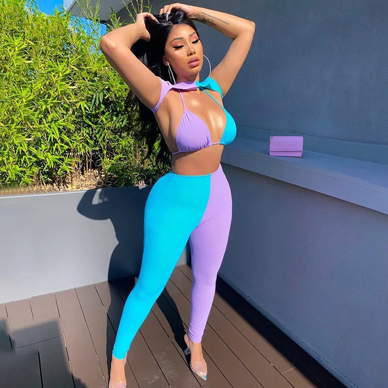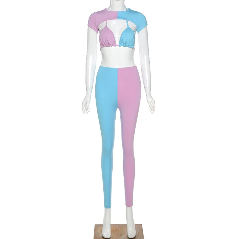 В стиле пэчворк пикантные спортивный костюм для женщин; Модная одежда без рукавов; Топ-Бюстгальтер Леггинсы Эластичный Высота Узкие Фитнес Тонкий для отдыха, костюм из 3 предметов