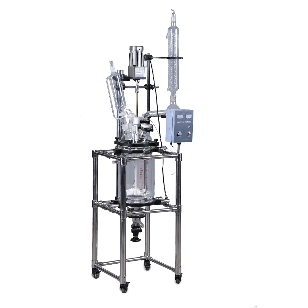 Реагенты устанавливаются во внутренний слой двухслойного стекла реакционного чайника, в то же время, вакуум может быть вынен и скорость смешивания регулируется. Прослойка может привести в охлаждающая жидкость, воду и высокотемпературную жидкость для нагрева и охлаждения материалов. Он может быть использован в эксперименте, среднетоннажном тестировании и производстве химии, тонкой химической инженерии, биологической аптеке и синтезе новых материалов.