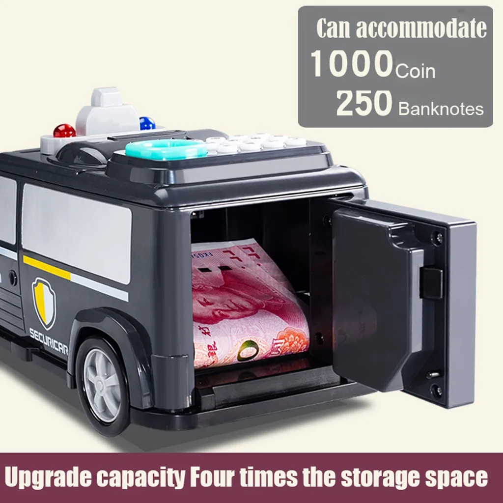 Креативный автомобильный банк, пластиковый банк, денежный перевозчик, безопасная монета, детские игрушки, украшения для дома. Деньги могут храниться в банке грузовика и использоваться для хранения банкнот и монет. Скрытая кнопка пароля на крыше автомобиля может быть разблокирована отпечатками пальцев, и интересный дизайн привлекает внимание детей. Начальный пароль (0000) Изменить пароль: когда дверь открывается, нажмите и удерживайте кнопку «*», введите четыре новых пароля, нажмите и удерживайте кнопку «#» для подтверждения, вы можете создать новый пароль. (Когда вы забудете свой пароль, вы можете вынуть аккумулятор и дать ему восстановить Заводский пароль на четыре нуля) Может использоваться как маленькая или как игрушка Идеальный подарок на день рождения и Рождественский подарок для вашего ребенка.Характеристики: