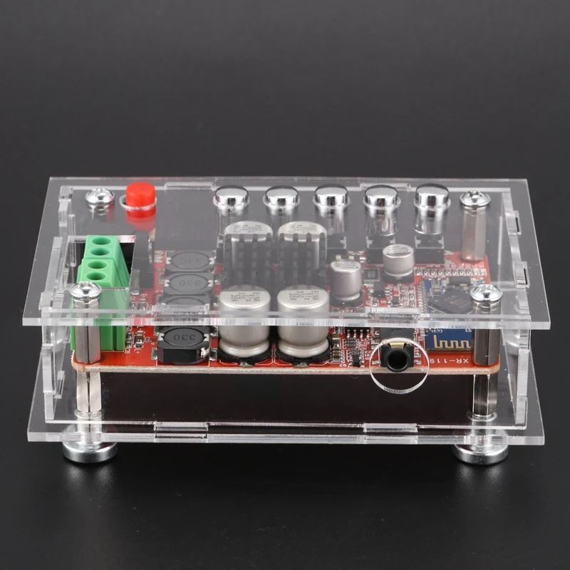 С входом AUX, с акриловой коробкой и теплоотводом может сделать ваш модуль высококачественным, небольшим размером, простым в использовании, чипом: TDA7492P, Питание: 2,1 интерфейс 8-25 В постоянного тока