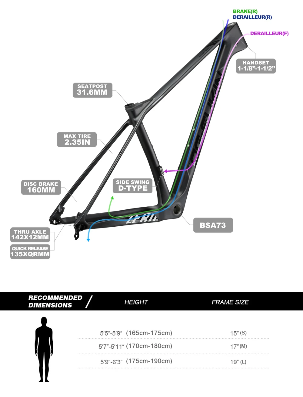Бренд: OG-EVKIN Модель: CF-053 Материал: T1000 из углеродного волокна Вес: 1150 г ± 50 г Применение: горные велосипеды Тип: 29er горный велосипед рама Отделка: матовая/Яркий логотип Ткань: UD Тип 135/142:142*12 мм через ось + 135*9 мм QR Тип 148:148*12 мм через ось Дисковый тормоз: 160 мм Каретка: BSA73 Подседельный штырь: 31,6 мм Размер: 15 "(S)/17" (м)/19 "(L) Переключатель: боковой качели D-TYPE Тормозная система: дисковый тормоз Макс шин: 2.35IN Гарнитура: 1-1/8 "-1-1/2" Особенность: легкий вес