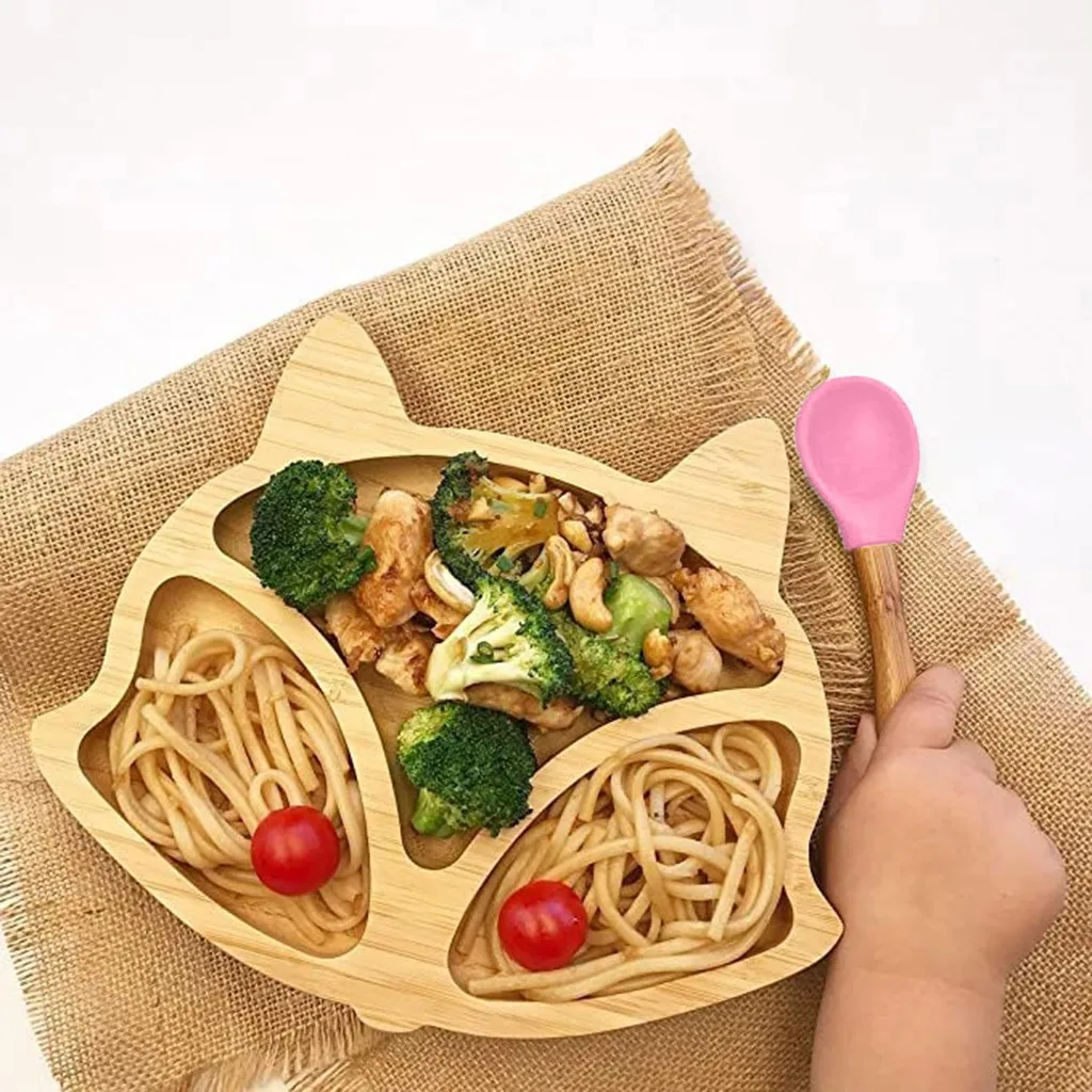 Одежда для маленьких детей ясельного возраста бамбука овец пластина силиконовой для кормления, на присоске чаша всасывания набор ложек