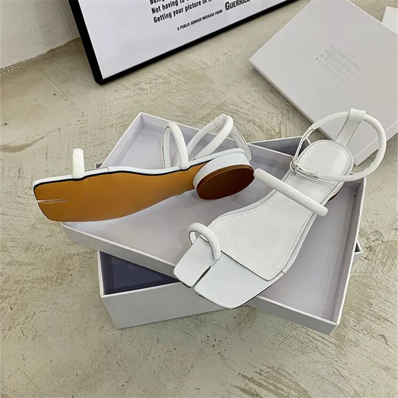 Кожаные сандалии на плоской подошве с открытым носком; Цвет белый, черный; Модные Дизайнерские летние босоножки; Женская пляжная обувь в богемном стиле с открытым носком; Женские сандалии