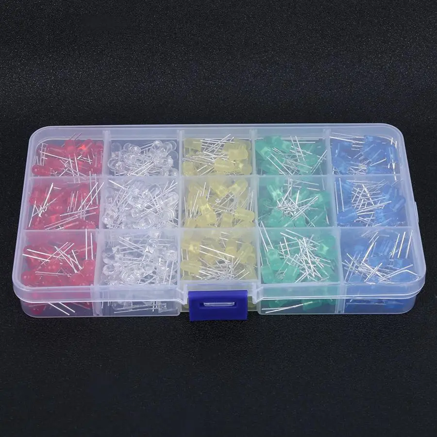 500 шт Светодиодный светильник набор диодов антикоррозийный пластик 5 мм синий/зеленый/желтый/красный