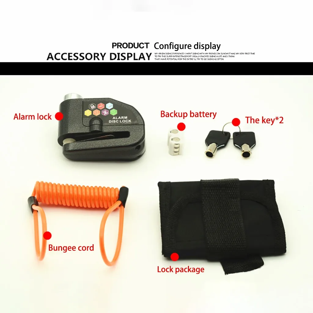Замок дискового тормоза со звуком 110 дБ 5 футов кабель напоминания для мотоциклов скутера велосипеда
