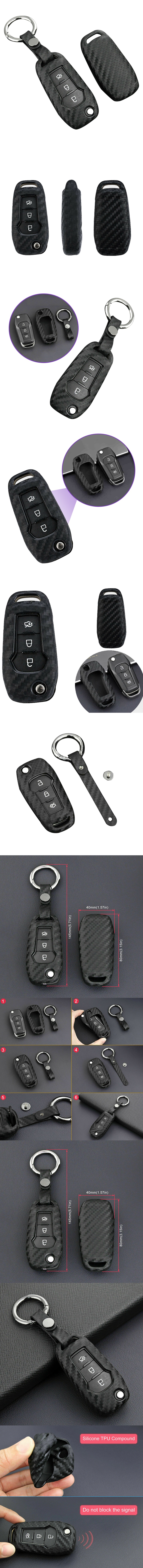 1 Set Matte Black Carbon Fiber Look Car Key Case Molding Holder.