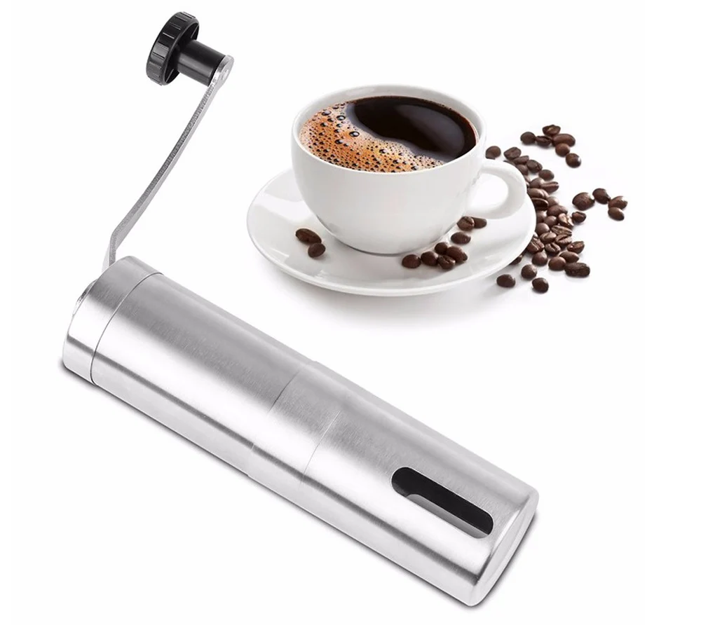 Легкий Кофемолка: удобный съемный ручной Кривошип механизм последовательно устраняет более 90% шума, что Электрические шлифовальные машины производят.