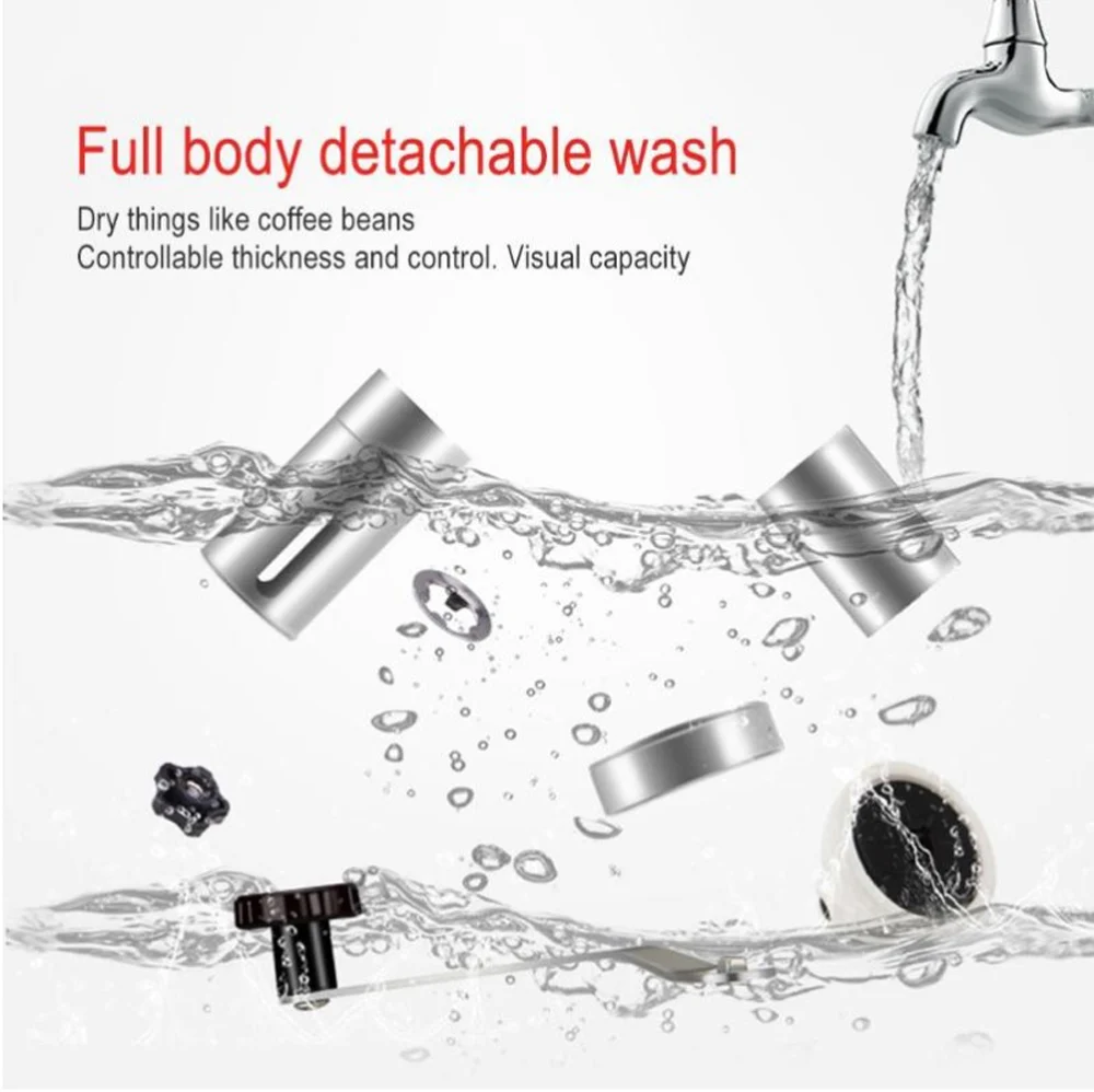 Легко чистить: Эта ручная кофемолка легко разбирается для очистки. После стирки, пожалуйста, высушите его перед повторной сборкой деталей. И вы можете повторно собрать кофемолку в соответствии с изображением.