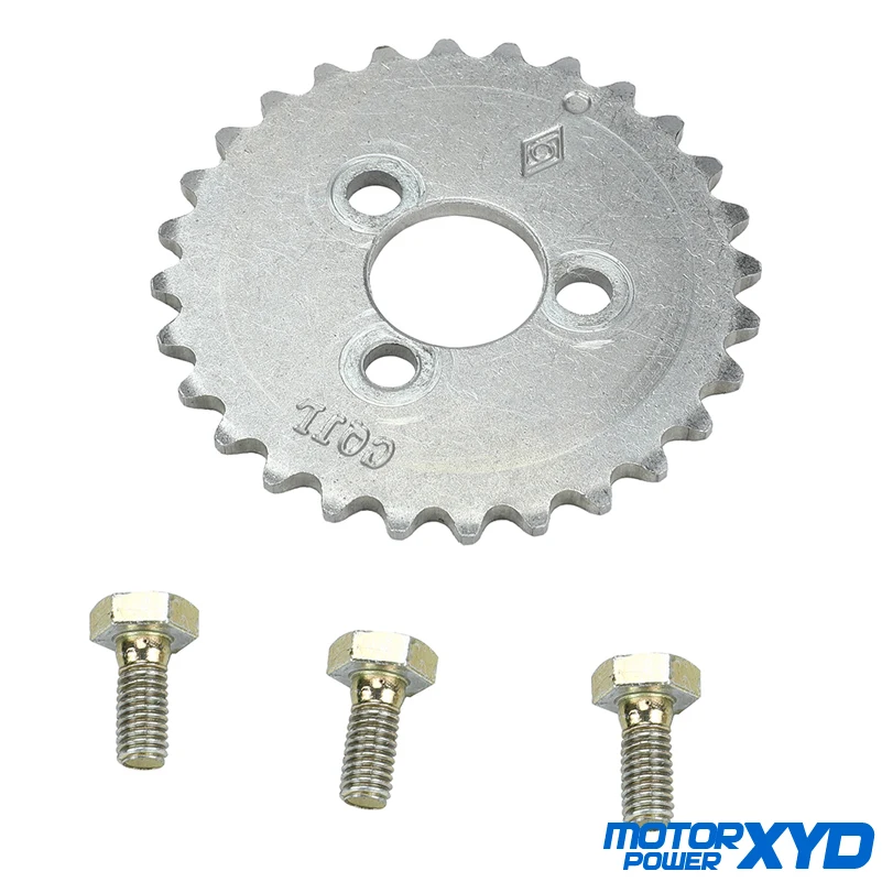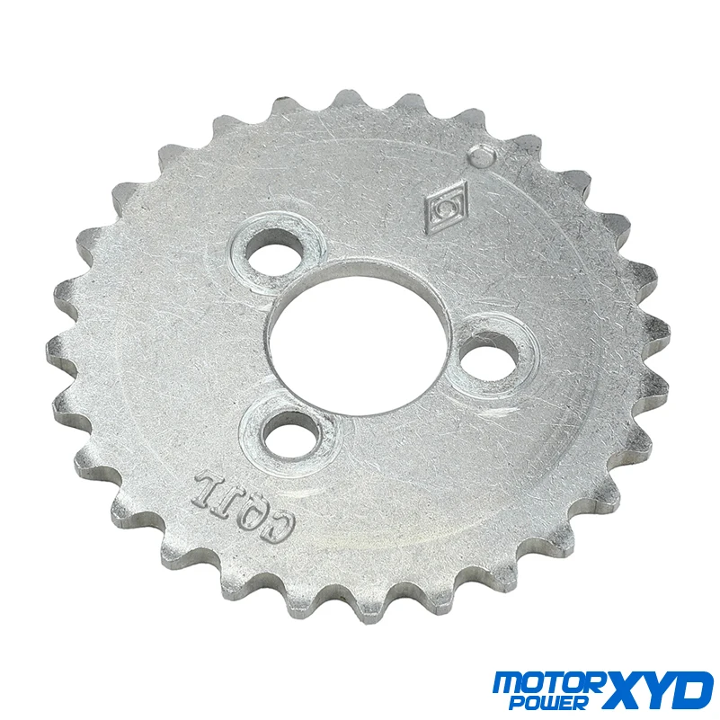 Зубчатая Звездочка с распределительным валом 28 Технические характеристики: -- Производство: Китай -- 100% новый -- Материал: сталь -- Посылка включает в себя: Звездочка-1 шт. 3 болта Горизонтальные стартовые двигатели (с воздушным охлаждением, масляным охлаждением), подходят для велосипедных питбайков 55 мм, 1P55FMJ 140cc
