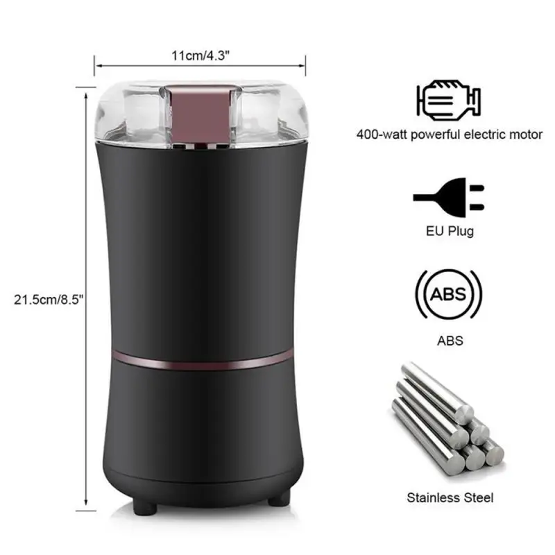 Многофункциональная электрическая шлифовальная машина может быстро и легко измельчать кофейные зерна, орехи, зерно, семена, специи, травы. Мощный двигатель и острое лезвие из нержавеющей стали предложат Вам вкусные кофейные гущи. Сделай Сам свой любимый кофе или другую еду с ним.
