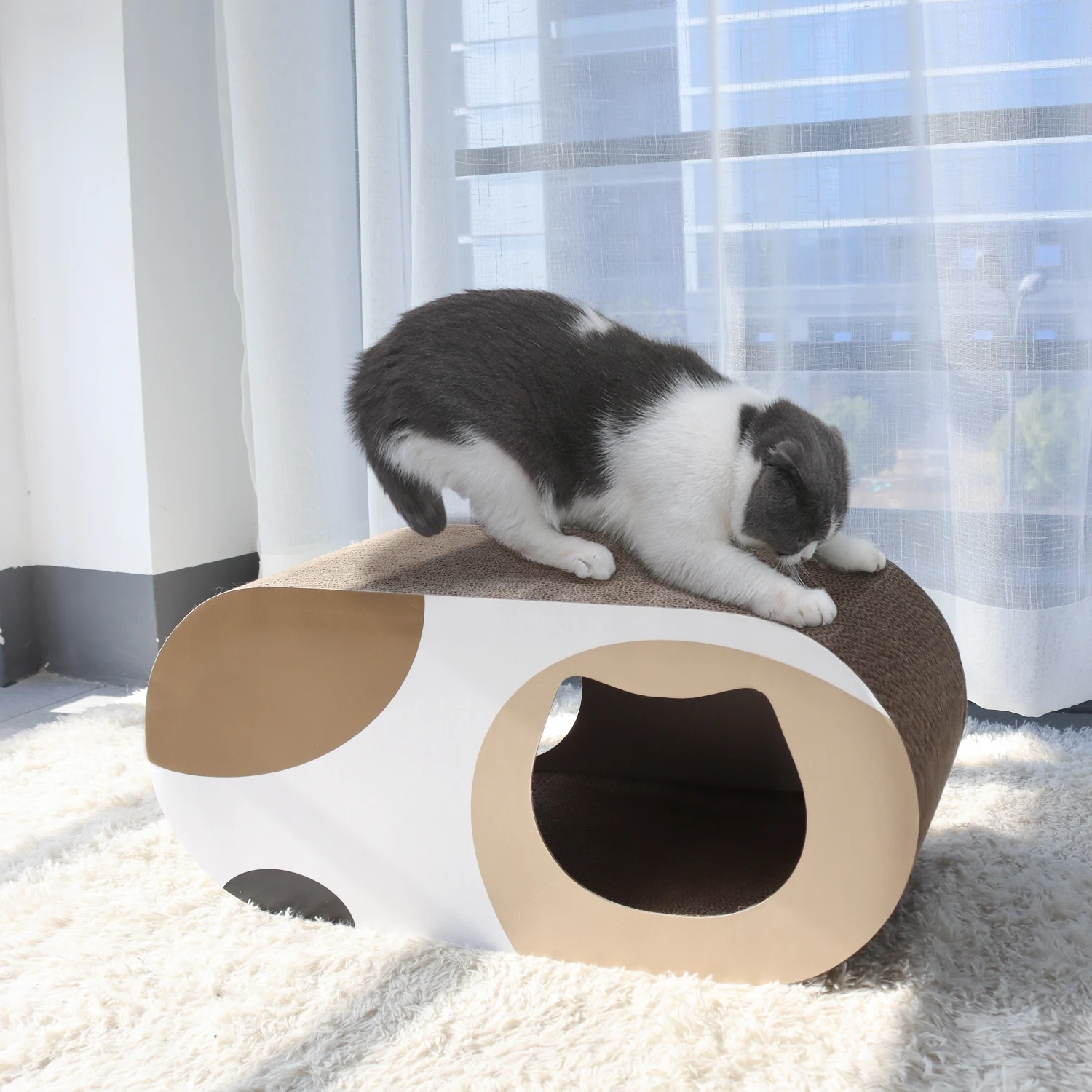 Особенности: 1. Это не только отличное место отдыха для вашего питомца, но и игрушка для животных для измельчения когтей 2. Хорошо разработан в соответствии с привычками кошки, практичный, креативный, экологичный, экономичный и многофункциональный 3. Маленький и компактный, не занимает слишком много места 4. С помощью этого, ваша кошка может легко Измельчить свои когти, чтобы предотвратить кошку от царапин на полу, диване, подушке и мебели 5. Изготовлено из безопасной, перерабатываемой, экологичной и износостойкой гофрированной бумаги, она может выдержать любую царапину и не повредить когти кошки, кошка не проглотит ее, и это облегчает дефекацию кошки 6. Без токсичных ингредиентов, прикрепленная кошачья кошечка может помочь кошке выкинуть шарики для волос 7. Он может привлечь вашу кошку к игре. Защитите свою мебель от царапин, удовлетворяйте естественные царапины вашей кошки