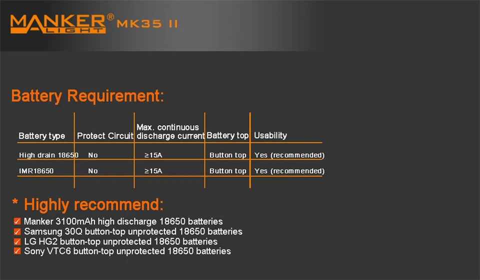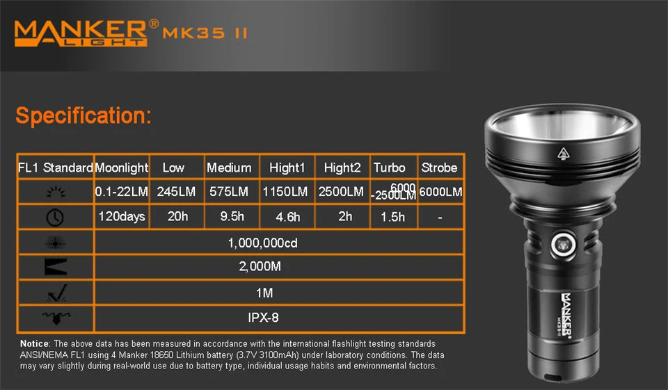 Светодиодный фонарь Manker MK35 II Luminus Type C с зарядкой от USB высокой мощности для наружного использования, большой диапазон, прожектор 18650