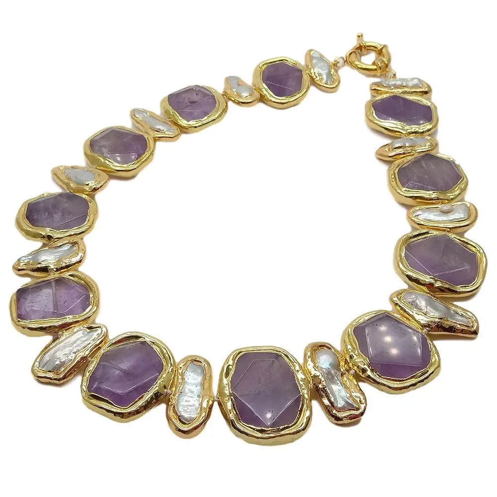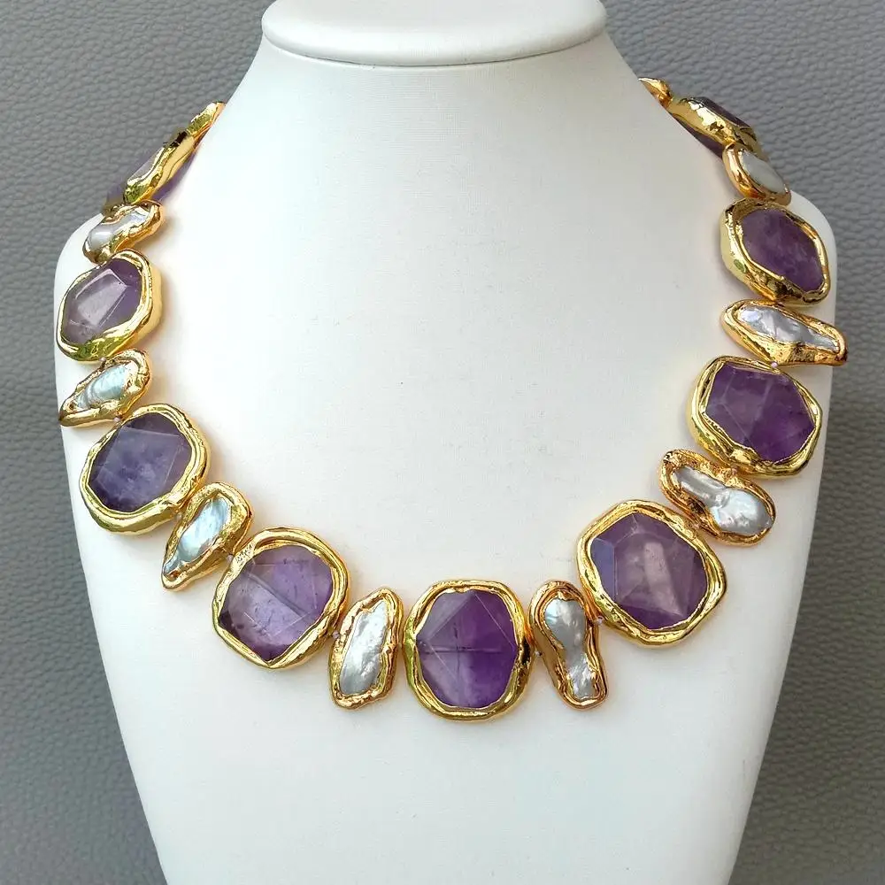 Информация о драгоценных камнями: пресноводная культивированная жемчужина, белая жемчужина Бива, самородный аметист, хорошее качество, высокий блеск!