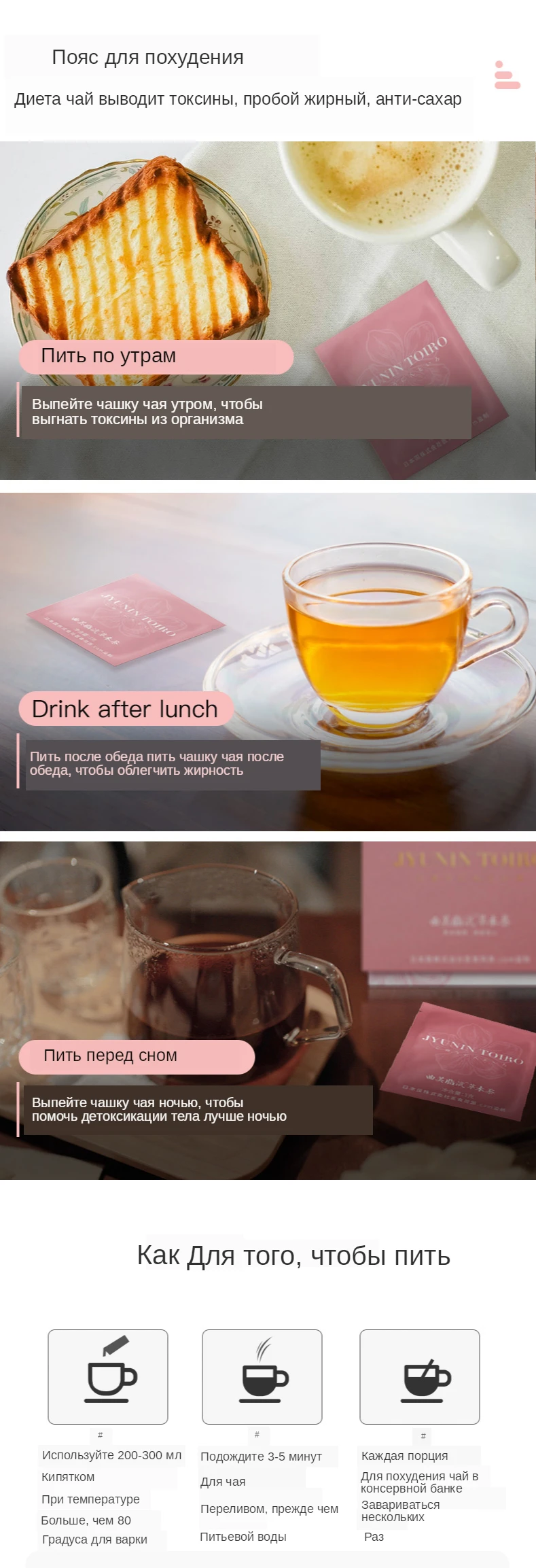 Шаг 1 Два раза в день, берем один чайный пакетик. Шаг 2 Замачивание кипятком в течение 5-8 минут. Шаг 3 Наслаждайтесь чайным супом.