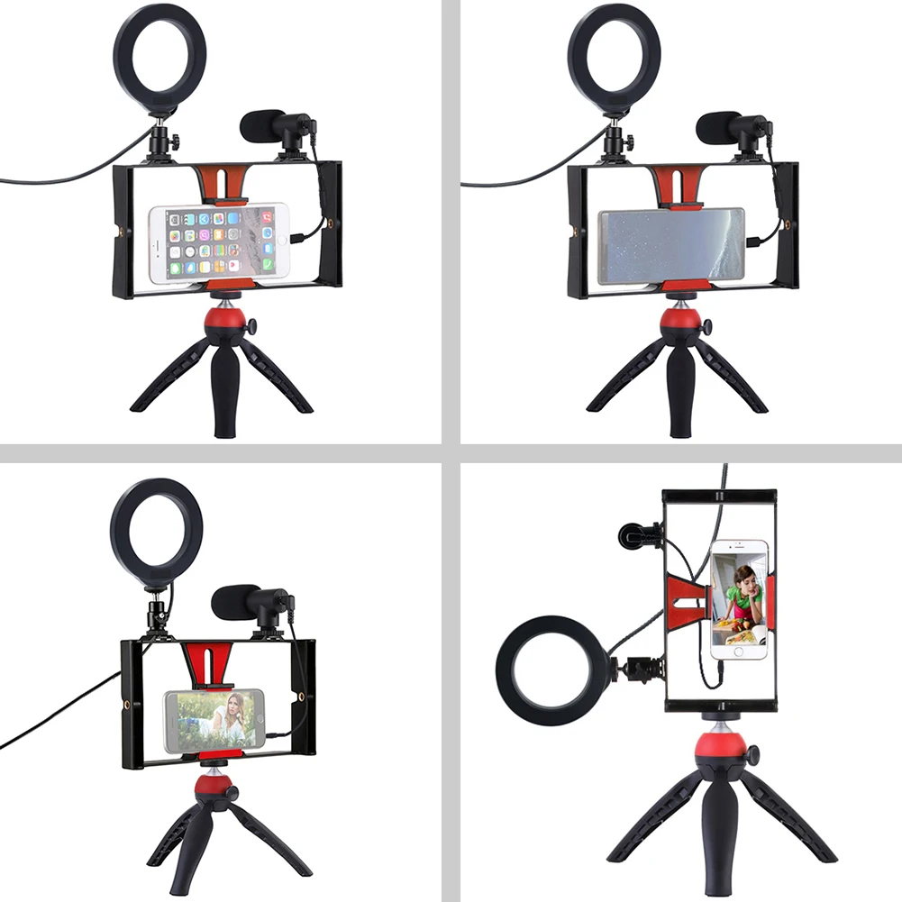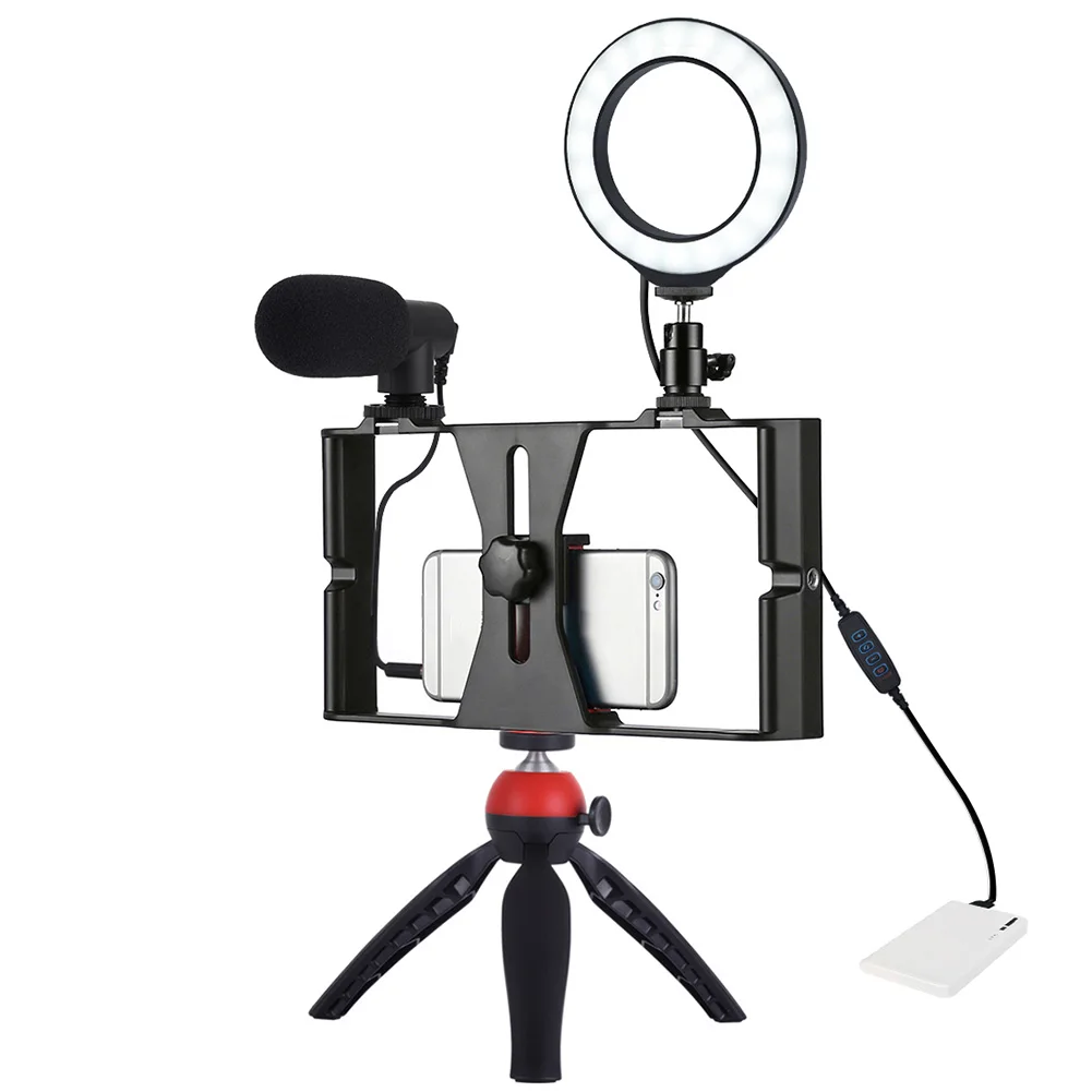 4 в 1 Vlogging прямая трансляция сотовый телефон киносъемок с функцией непрерывного изменения 4,6 дюймов кольцо светодиодный селфи лампа наборы с микрофоном штатив крепление Холодный башмак штатива для iPhone Huawei Xiaomi LG Google