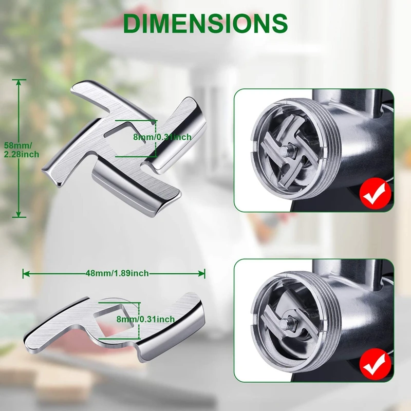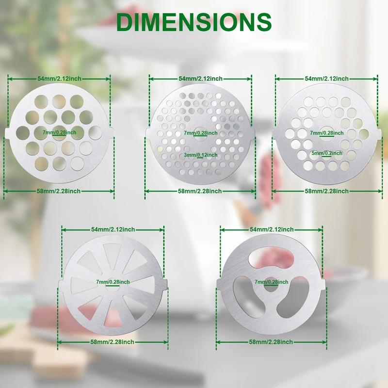 Compatibility: the meat grinder plate discs and grinder blades are replacement parts of meat grinder, compatible with meat grinders with a diameter of 55 mm, suitable for size 5 stand mixer and meat grinder, can help you to grind meats, cheeses, vegetables, fruits, sausage, bread and so on, please check the size carefully before purchasing.