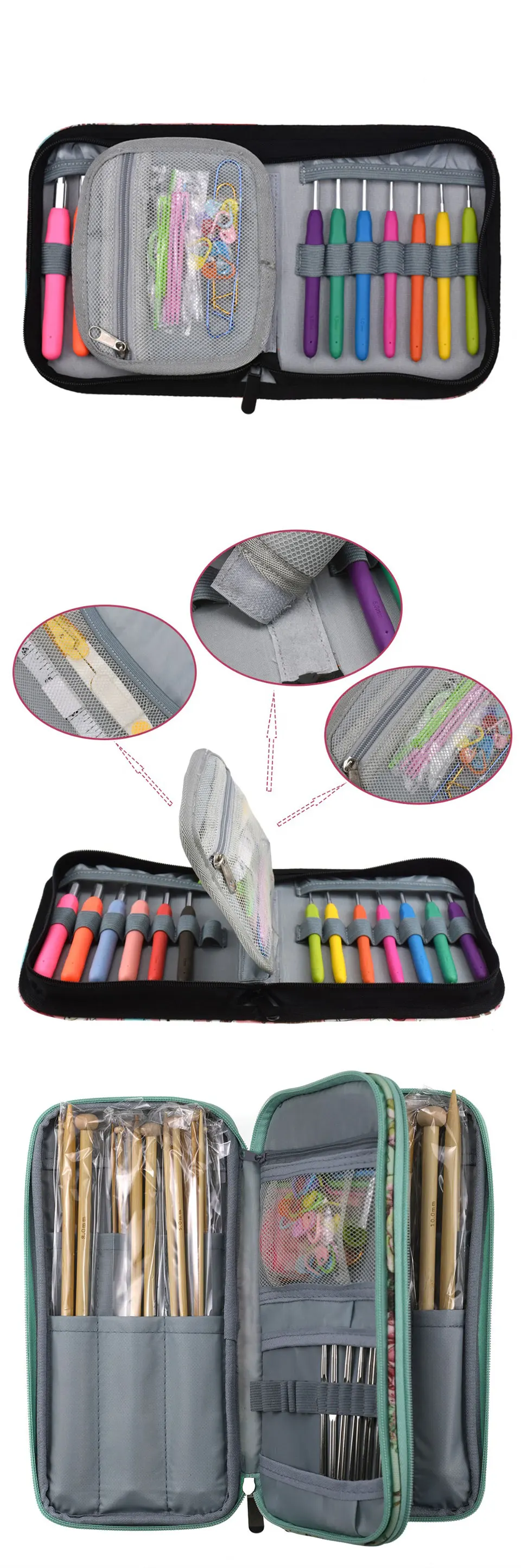 Пустая сумка для вязания, сумка для хранения ниток, крючком Особенности: 1. Портативность и идеально подходит для переноски небольшого проекта на ходу, а также для вязания на ходу. 2. Внешний дизайн карманов: крючки «кроше» могут храниться в нескольких карманах разного размера. Примечание: Мы отправляем только пустой пакет для хранения, не включая шарики для пряжи и Швейные аксессуары