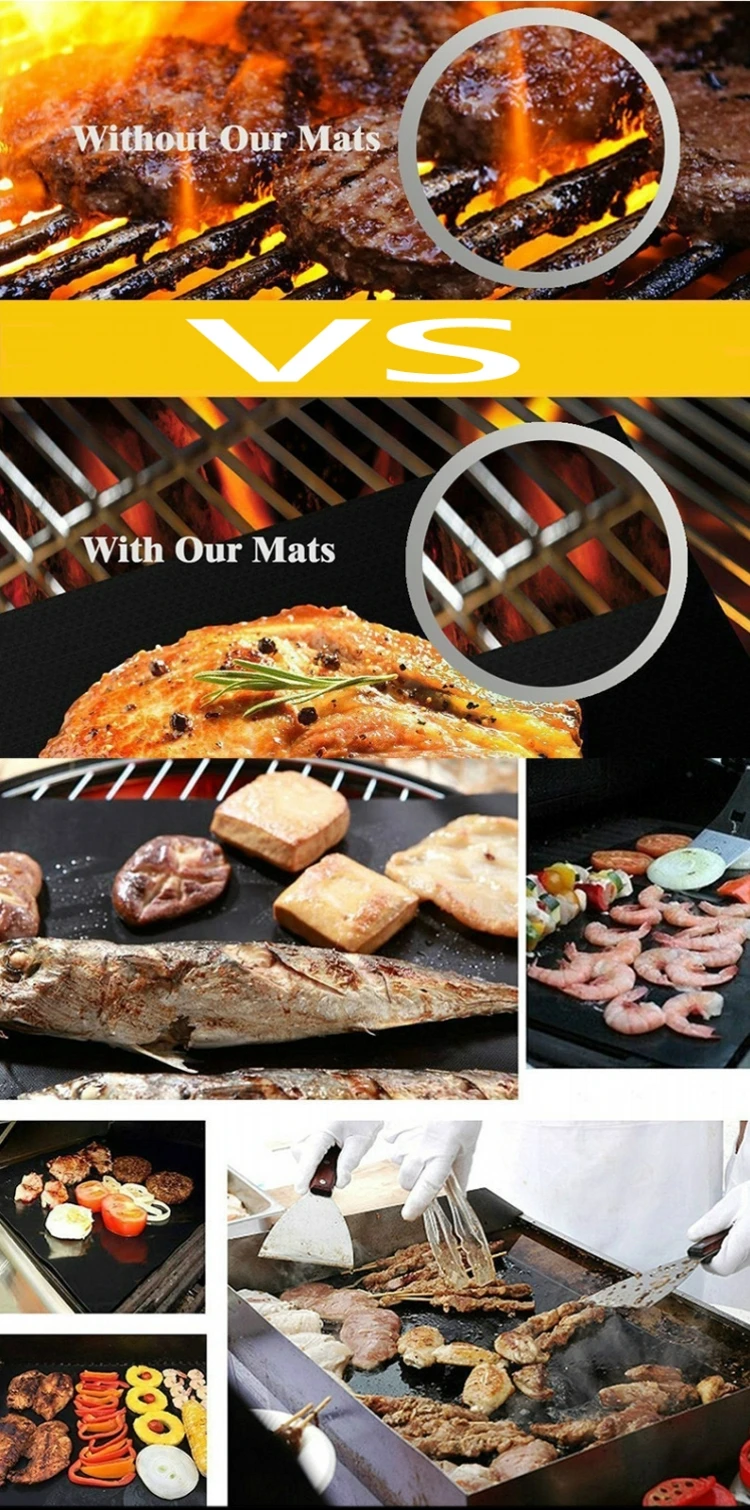 При высокой температуре можно разрезать коврик для барбекю, изготовленный из стекловолокна, водонепроницаемый и маслостойкий, легко чистить, протирать маслом, больше не нужно беспокоиться о масле!
