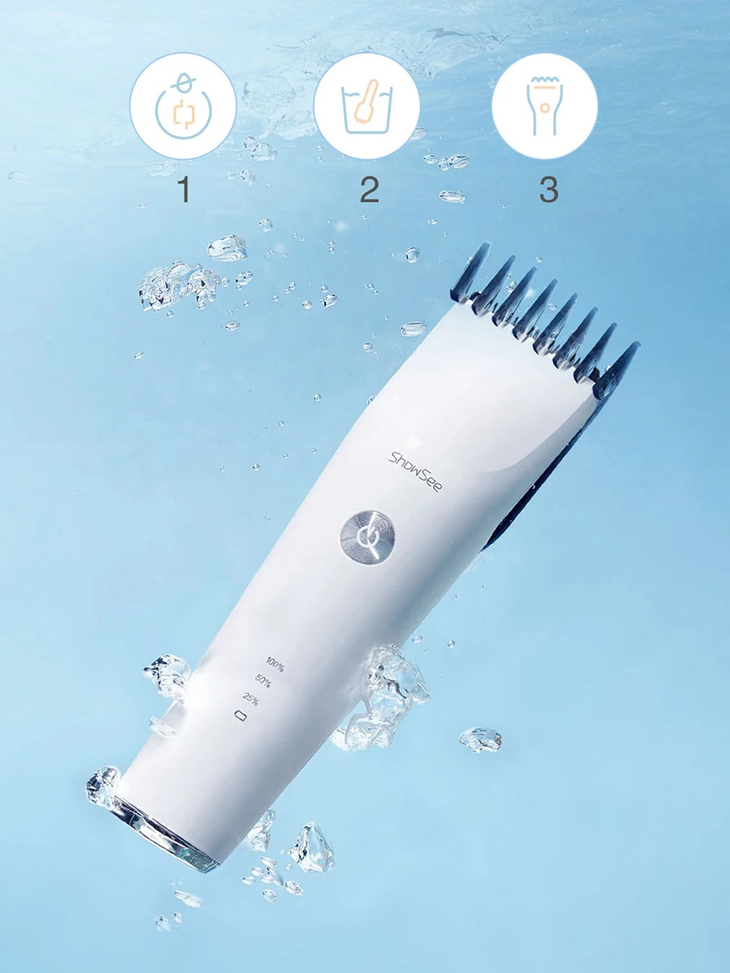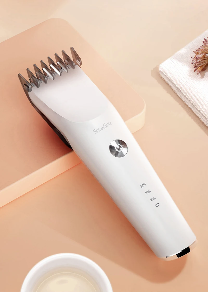 Электрическая машинка для стрижки волос ShowSeeЛегче подстригать волосы,Керамическое лезвие, шумоподавление и водонепроницаемость,Быстрая зарядка Type-C, подходит для семьи