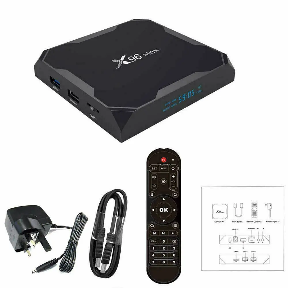 1 x X96 MAX Plus Android TV Box 1 х адаптер питания. 1 x Кабель HDMI 1 x ИК-пульт дистанционного управления (батарейки в комплект не входят). Руководство пользователя (1 шт.)