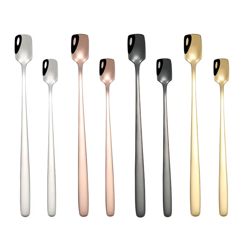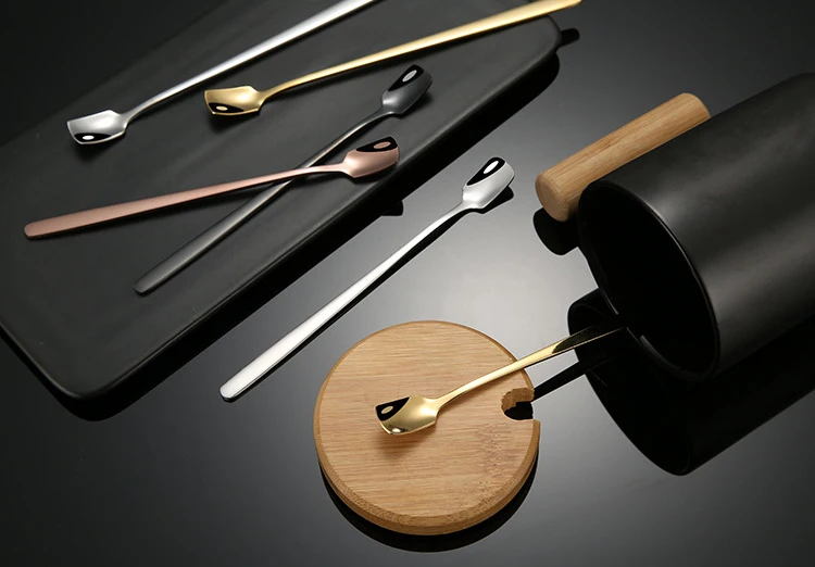 Материал: Нержавеющая сталь Размер: 155*15 мм/172*15 мм Цвет: серебристый, золотой, розовое золото, черный Тип: кофейная ложка, десертная чайная ложка, ложка для льда