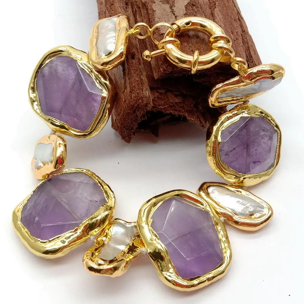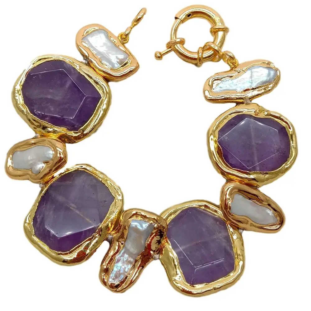 Информация о драгоценных камнями: пресноводная культивированная жемчужина, белая жемчужина Бива, самородный аметист, хорошее качество, высокий блеск!