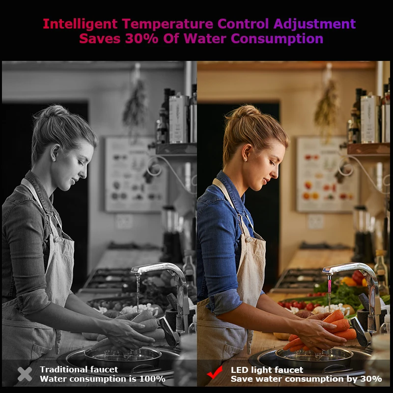 Чувствительный светильник смесителя изменит цвет в зависимости от температуры воды.