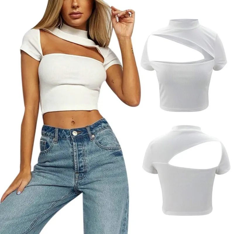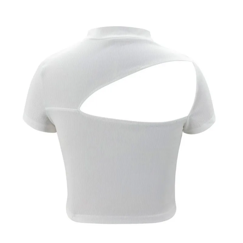 Feature cutout solid color round neck short sleeve top