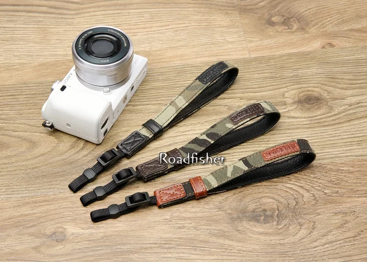 Комплектация: 1 наручный ремень для камеры Общая длина: 23 см, ширина: 2 см, толщина: 2,7 мм; Материал: искусственная кожа + Камуфляжный холст; Подходит для большинства беззеркальных и DSLR-камер, если отверстие для камеры более 1 см