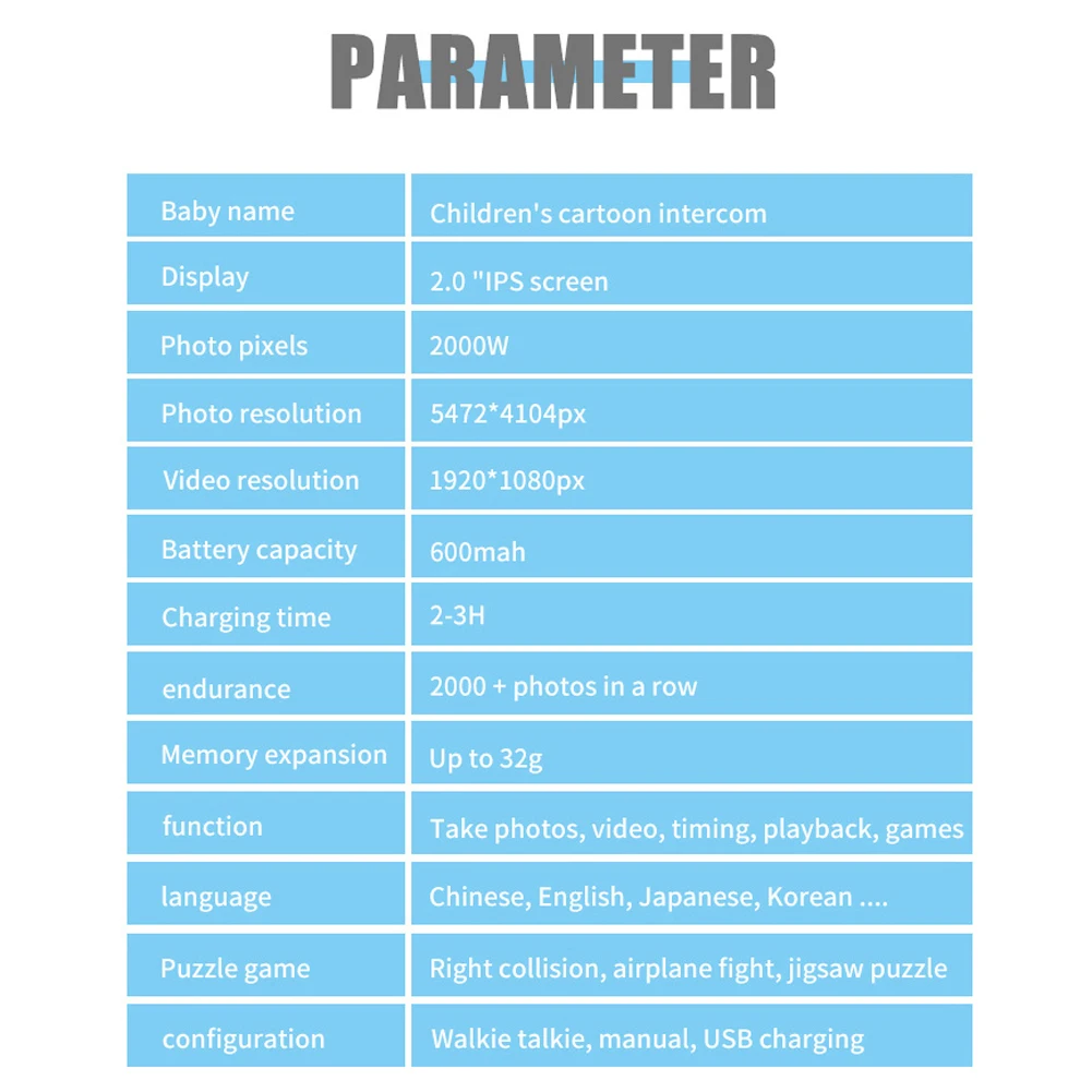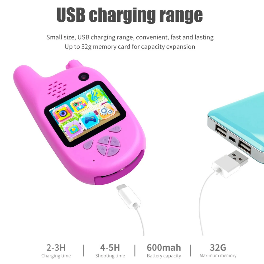 -HD камера с 2,0 дюймовый IPS экран для детей, также может использоваться в качестве портативная рация, оставайтесь на связи с друзьями и семьями.