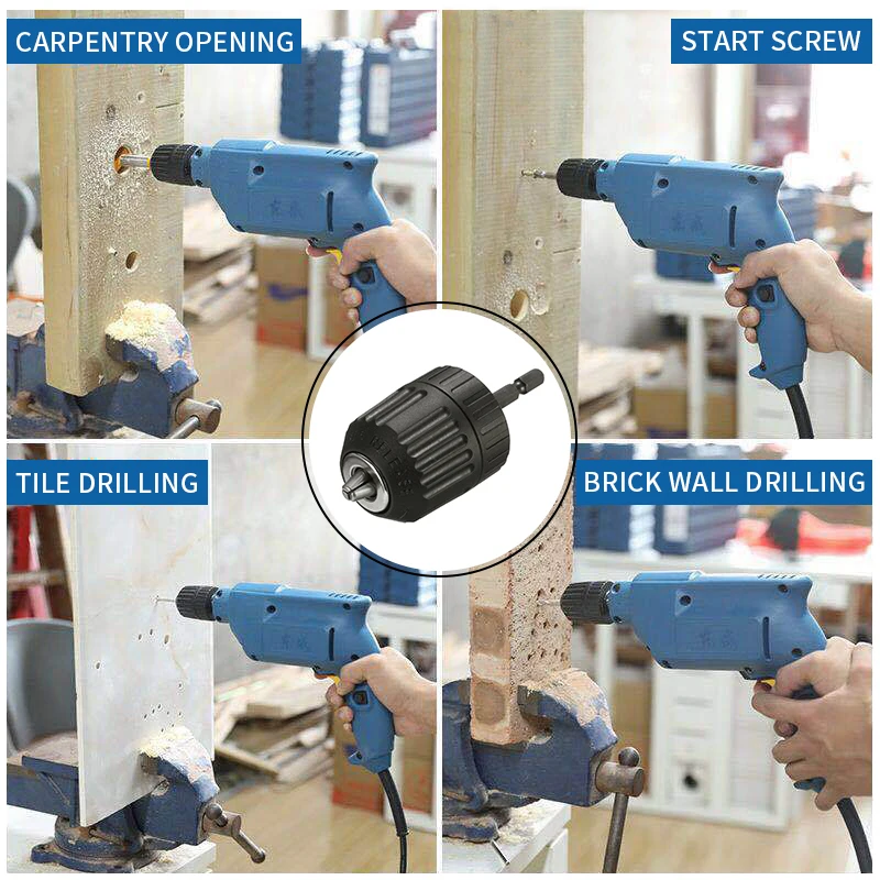 ** Использование: Используйте этот патрон для преобразования любой аккумуляторной отвертки в дрель или шлифовальную машину.
